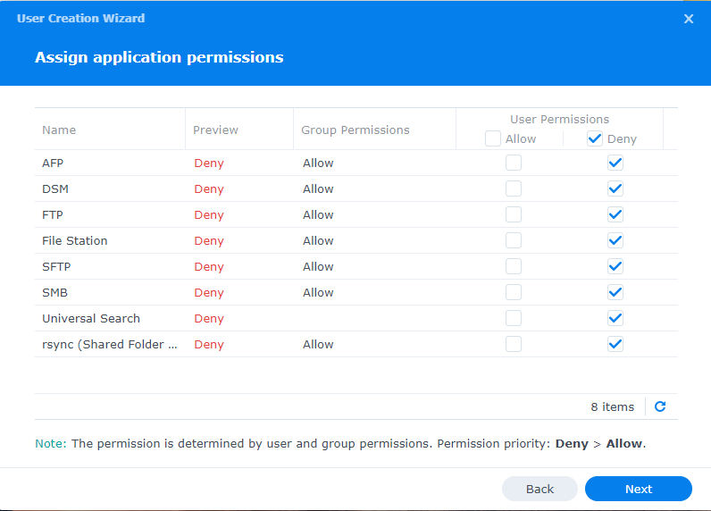 In this screen, you will be able to select which application this user will have access to. Check Deny for all applications.